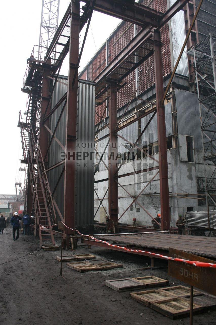 В 2007 г. наша организация завершила работы "под ключ" по строительству аспирационной установки хвостовых частей агломашин №1-6 МК "Запорожсталь" на базе двух электрофильтров ЭГУ2-302-52-12-6WS640-500-3. Разработка велась с учетом существующих фундаментов, постамента и инфраструктуры строительной площадки. Энергомашэкология разрабатывала и поставляла электрофильтры, систему сбора и транспортировки уловленной пыли.