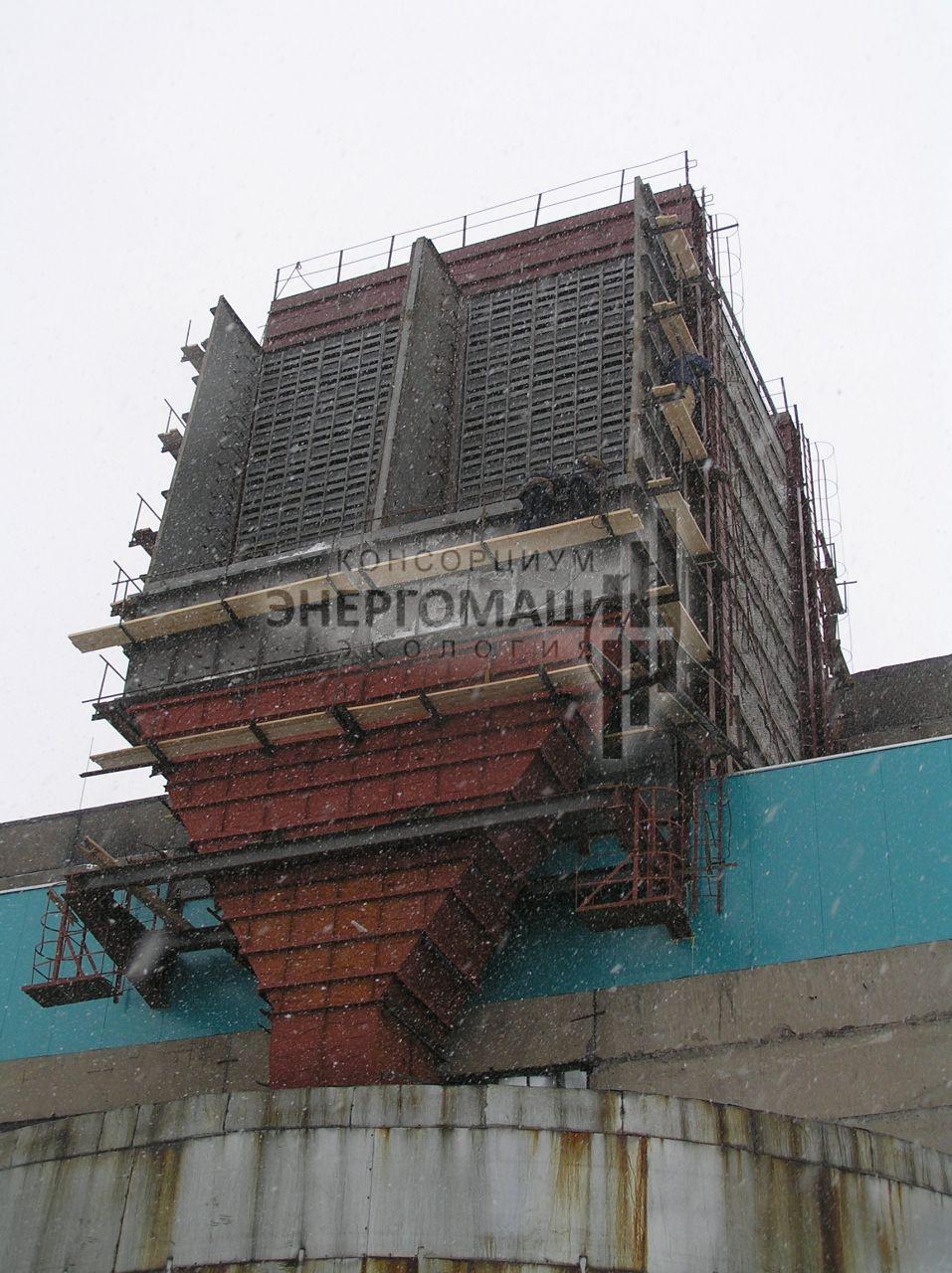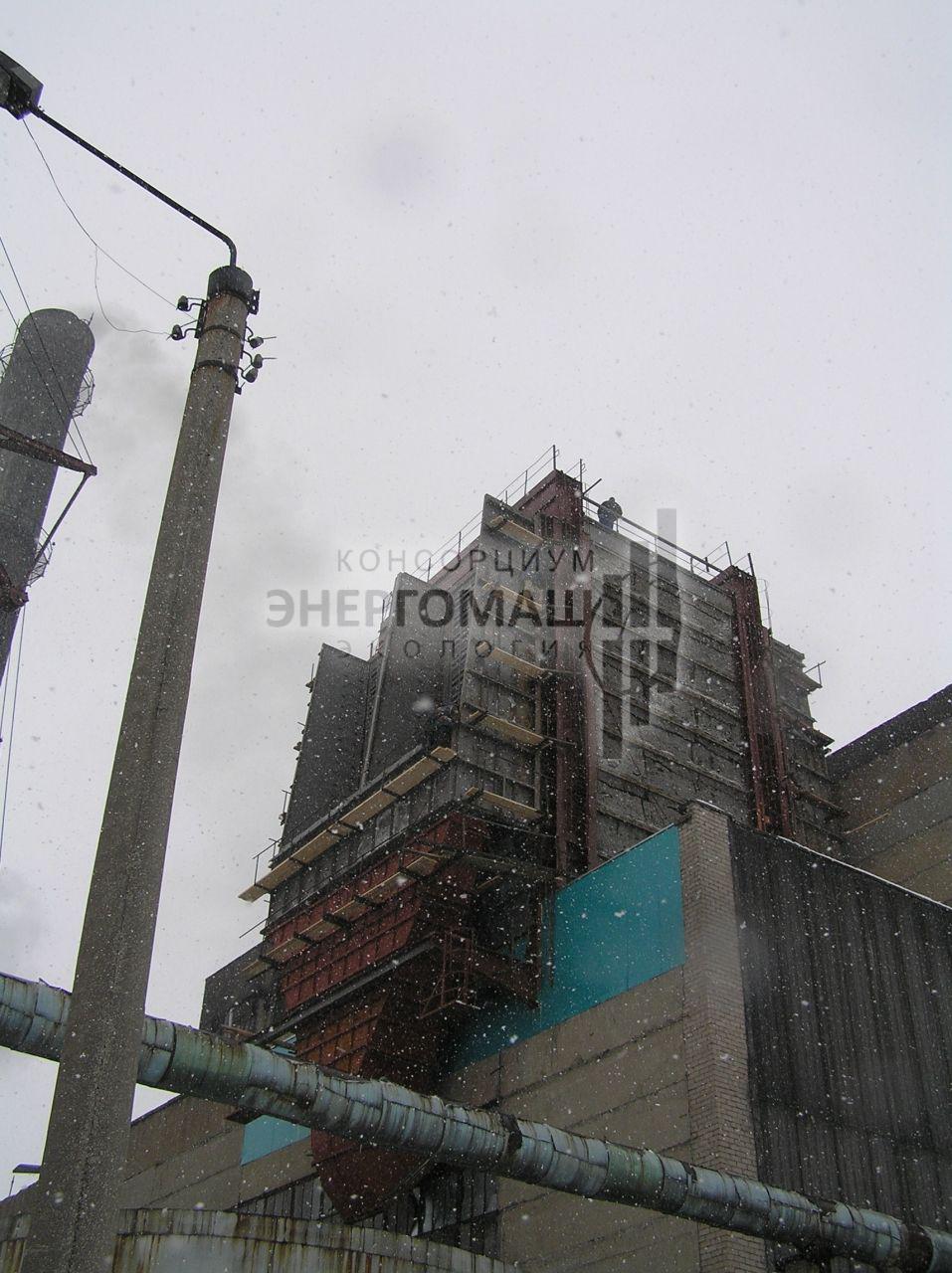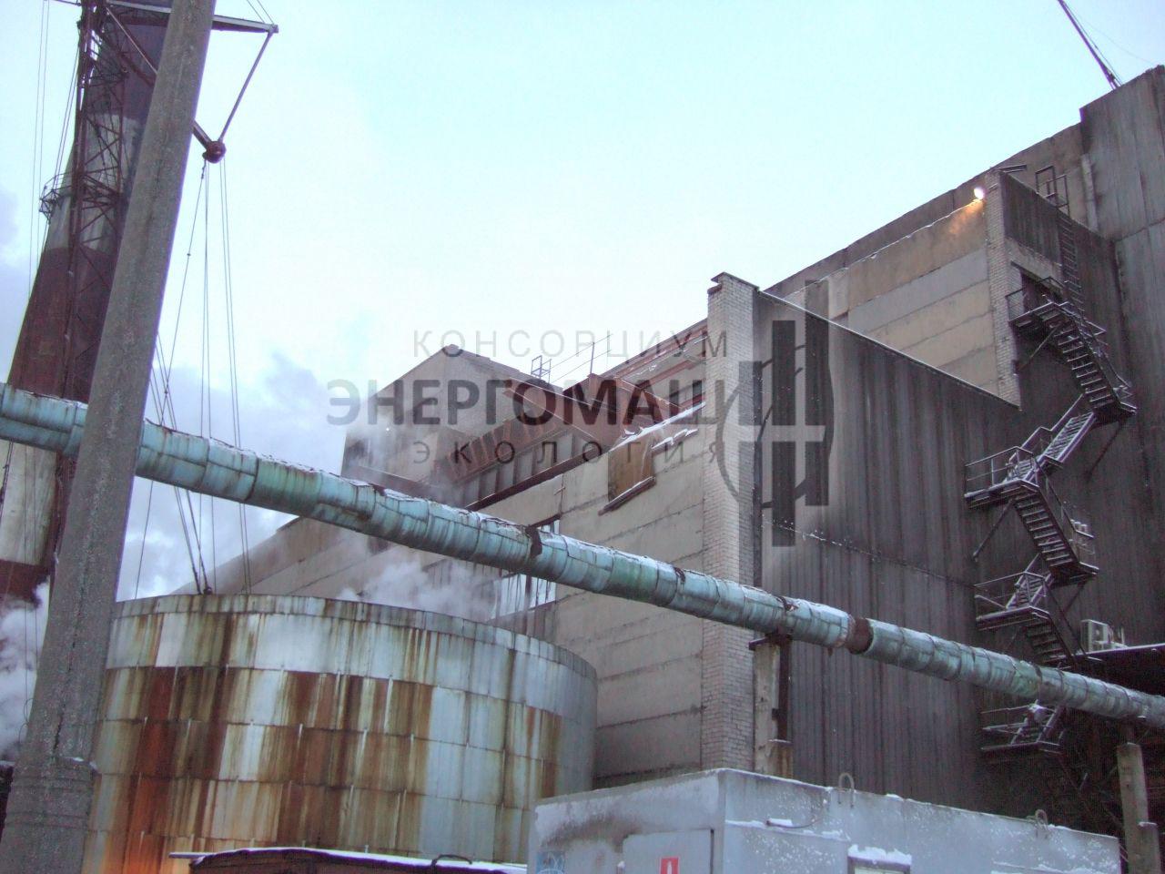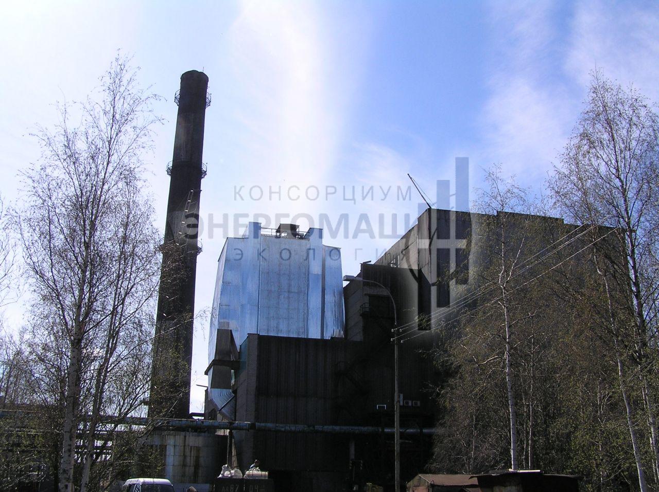 В 2007 наша организация выполнила работы "под ключ" по оснащению котла КМ-75-40 ст.№5 на ОАО "Соломбальский ЦБК" электрофильтром ЭГУ 105-21-12-9WS640-400-1. Основной задачей проекта стояло размещение электрофильтра в крайне стесненных условиях, поэтому была разработана специальная конструкция однопольного электрофильтра с установкой на крыше котельной.